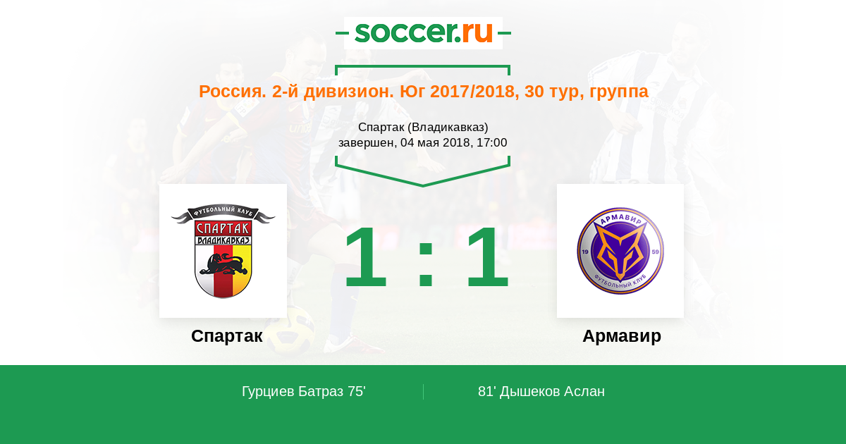 Россия. 2-й дивизион. Юг 2017/2018, 30 тур