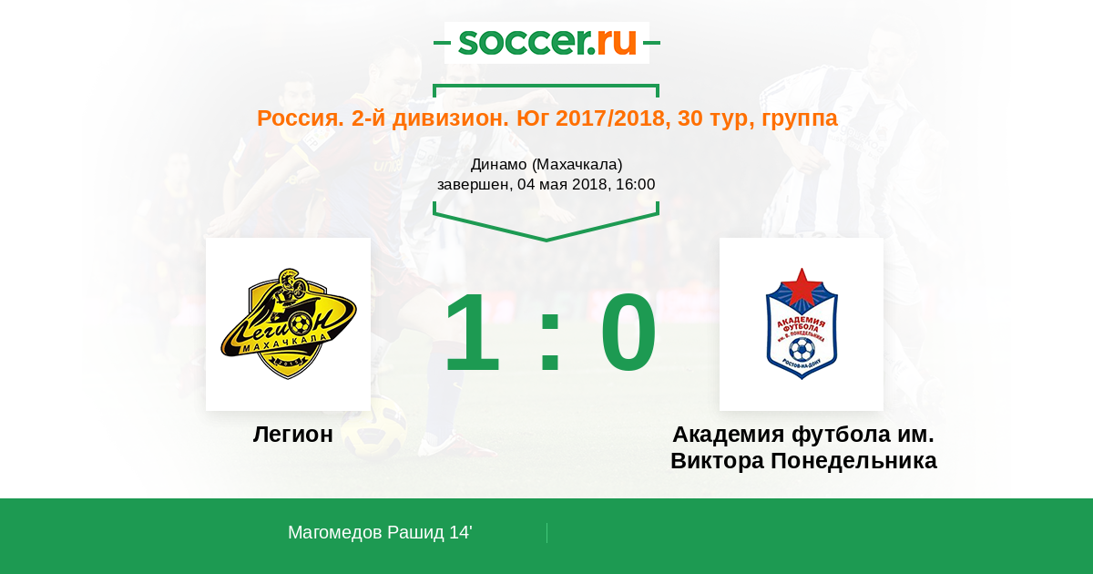 Протокол матча Легион против Академия футбола им. Виктора Понедельника