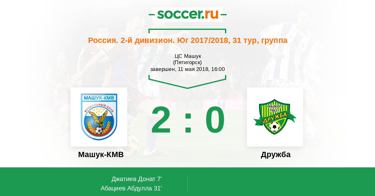 Протокол матча Машук-КМВ против Дружба