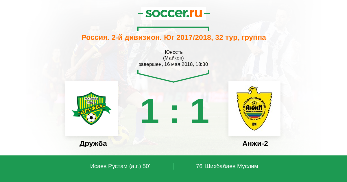 Протокол матча Дружба против Анжи-2