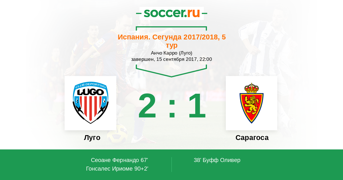 Протокол матча Луго против Сарагоса