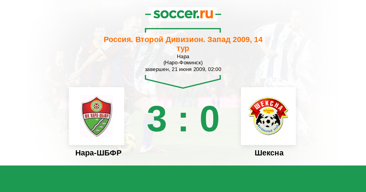 Россия. Вторая лига. Группа 2 02.06.2010 Шексна Логотип футбольный клуб Шексна (Череповец) 2:1 Логотип футбольный клуб Нара-ШБФР (Наро-Фоминск) Нара-ШБФР