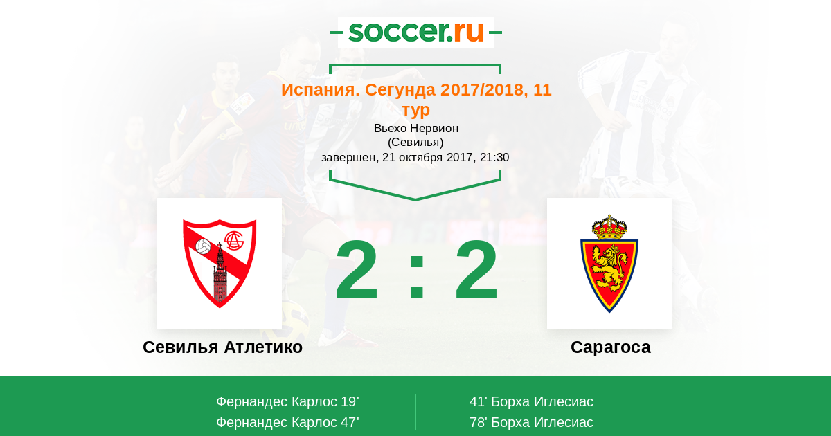 Протокол матча Севилья Атлетико против Сарагоса