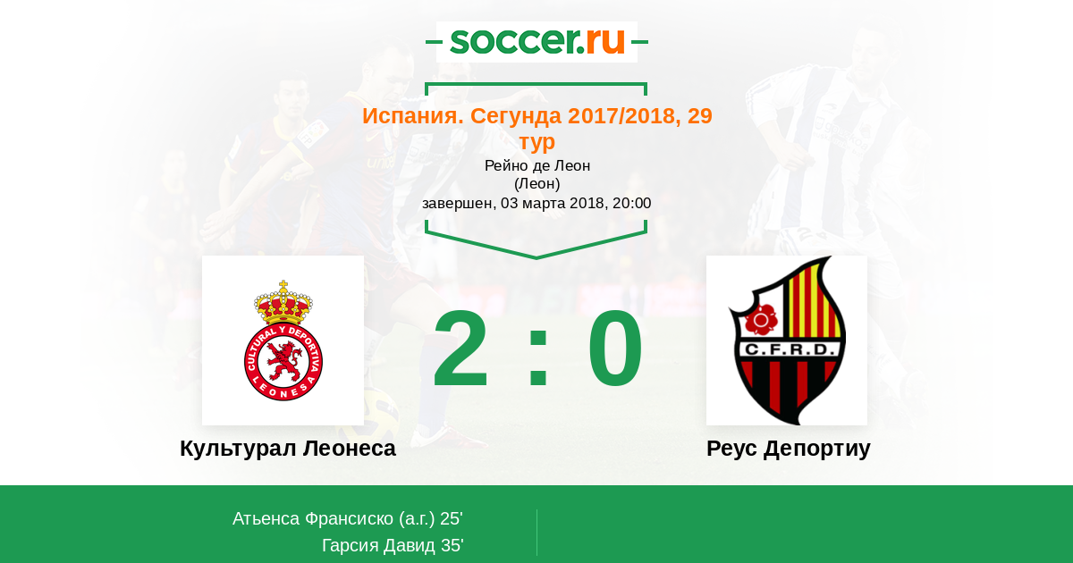 Протокол матча Культурал Леонеса против Реус Депортиу