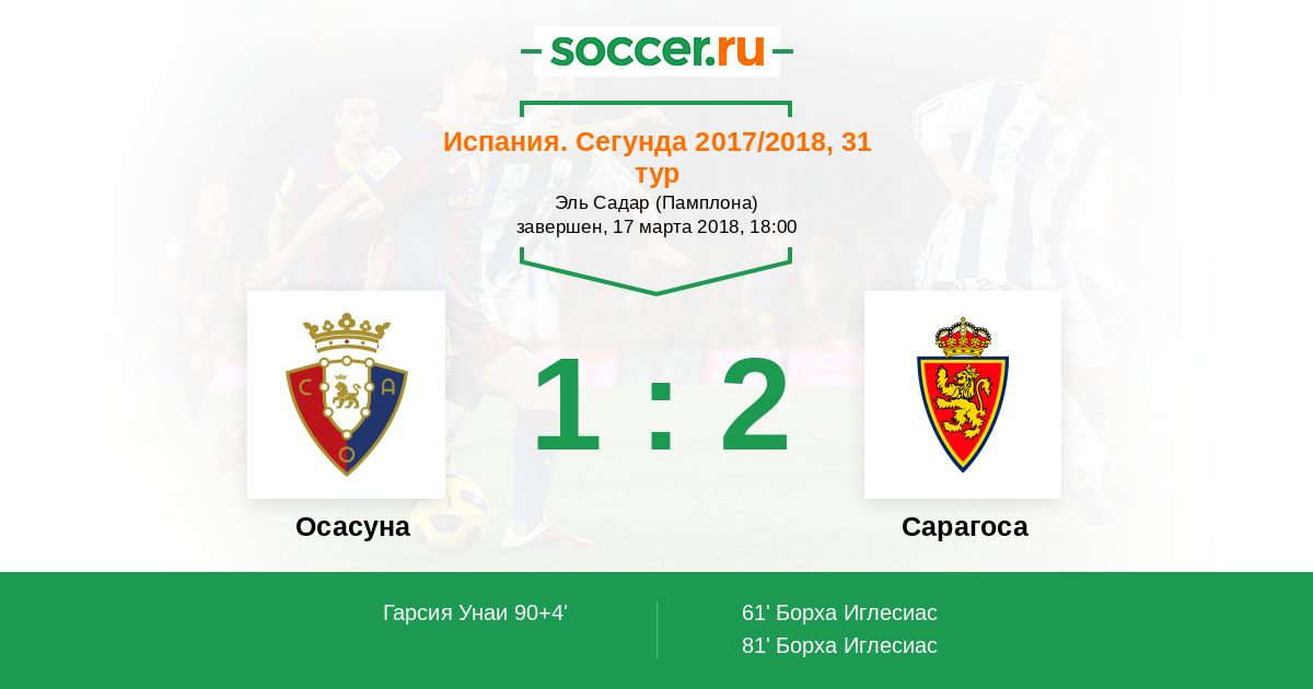 61' (0:1) Борха Иглесиас (9) (Бенито Альберто (2))