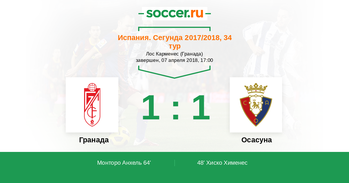 Протокол матча Гранада против Осасуна