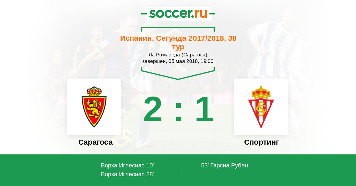 Протокол матча Сарагоса против Спортинг
