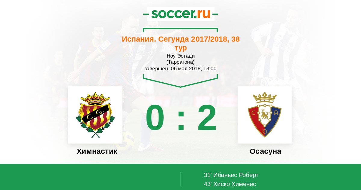Протокол матча Химнастик против Осасуна