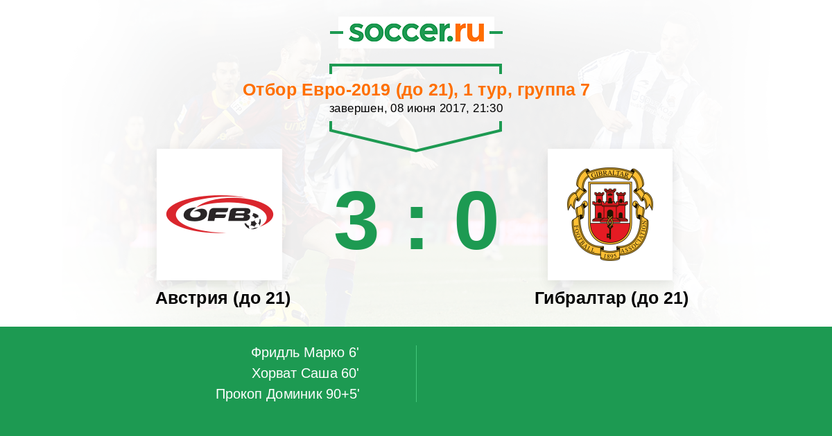 Протокол матча Австрия (до 21) против Гибралтар (до 21)