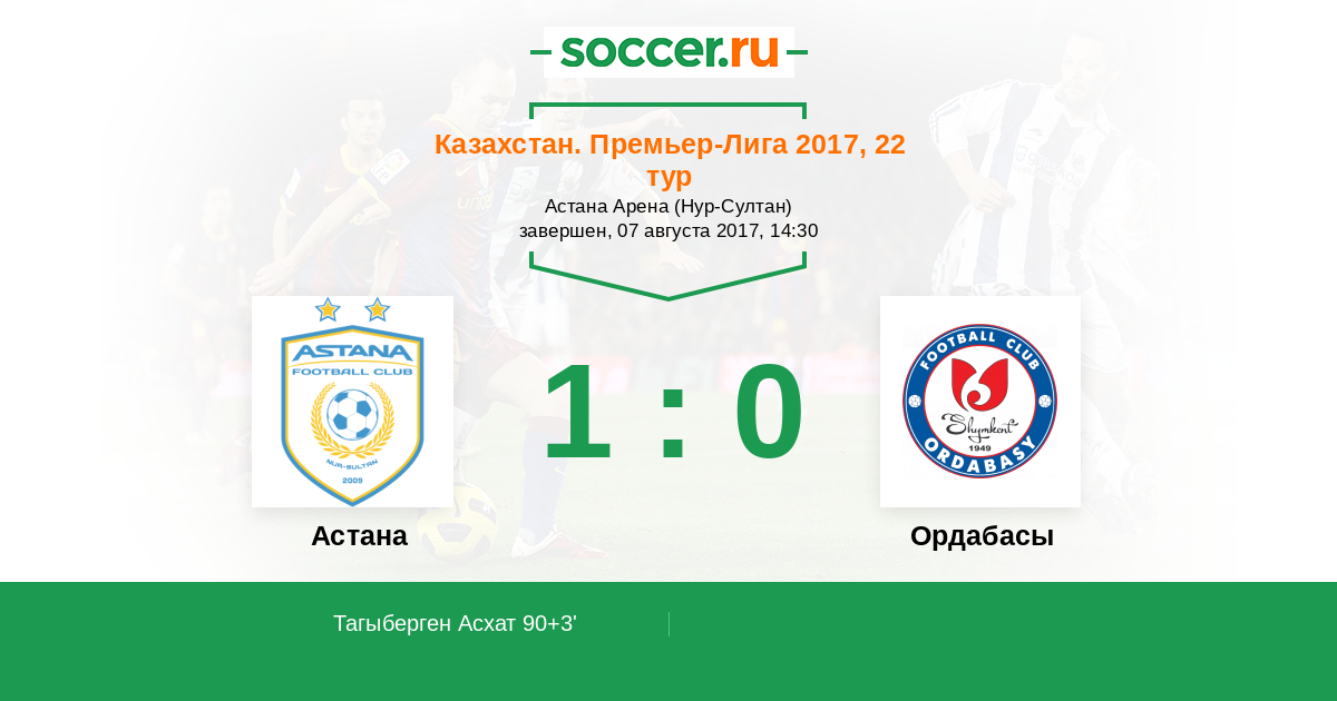 Протокол матча Астана против Ордабасы