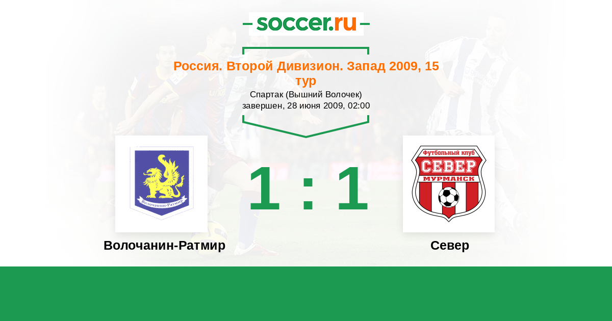 Россия. Вторая лига. Группа 2 09.10.2009 Север Логотип футбольный клуб Север (Мурманск) 5:4 Логотип футбольный клуб Волочанин-Ратмир (Вышний Волочек) Волочанин-Ратмир