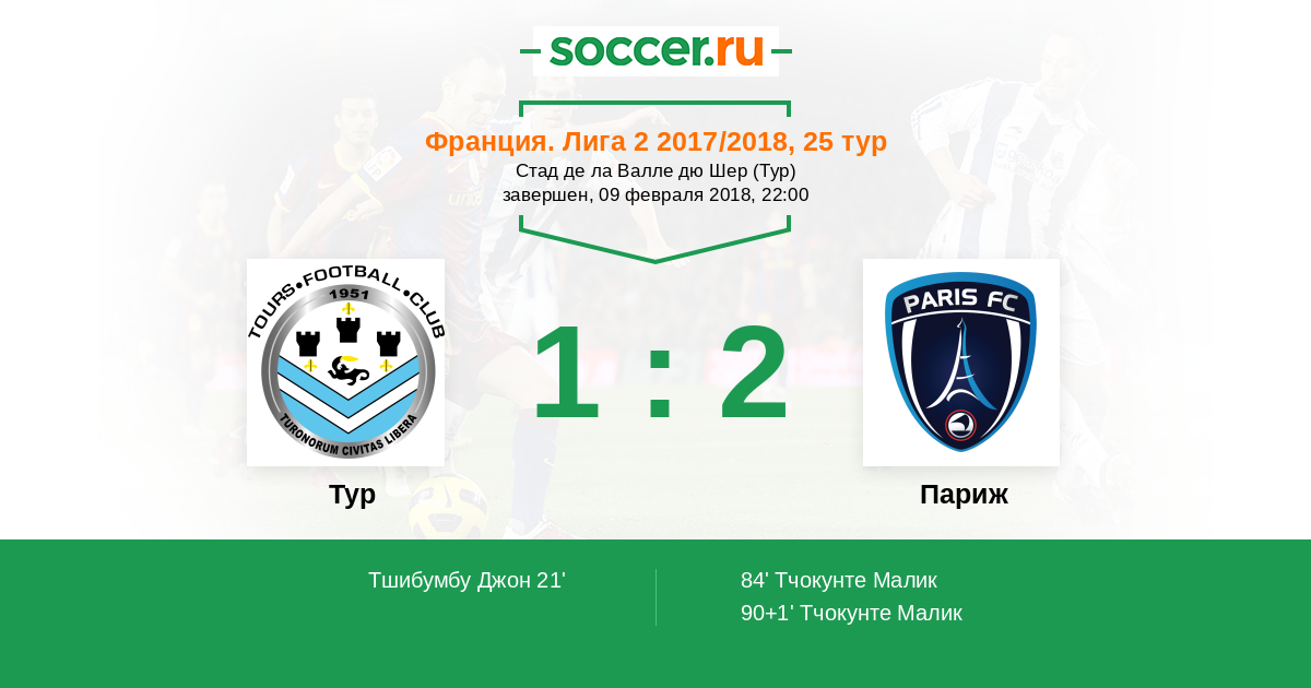 90+1' (1:2) Тчокунте Малик (18)