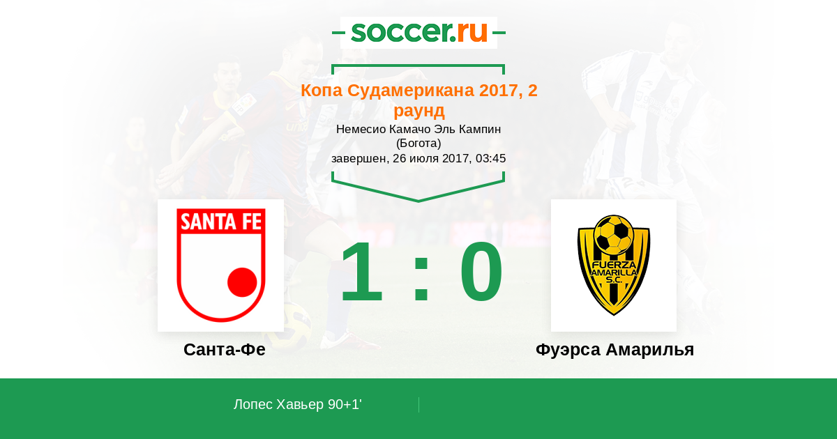 Протокол матча Санта-Фе против Фуэрса Амарилья