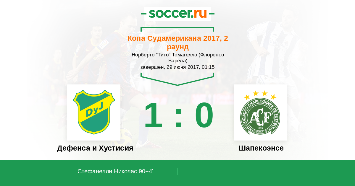 Протокол матча Дефенса и Хустисия против Шапекоэнсе