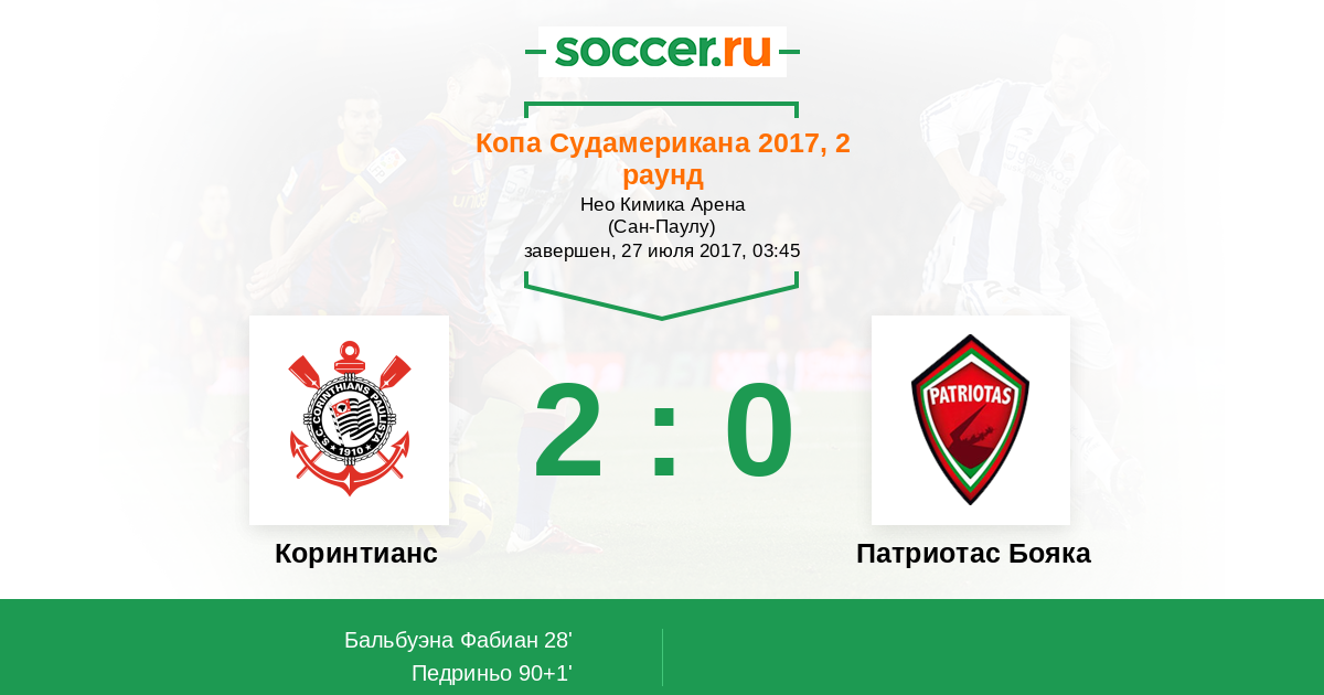 Протокол матча Коринтианс против Патриотас Бояка