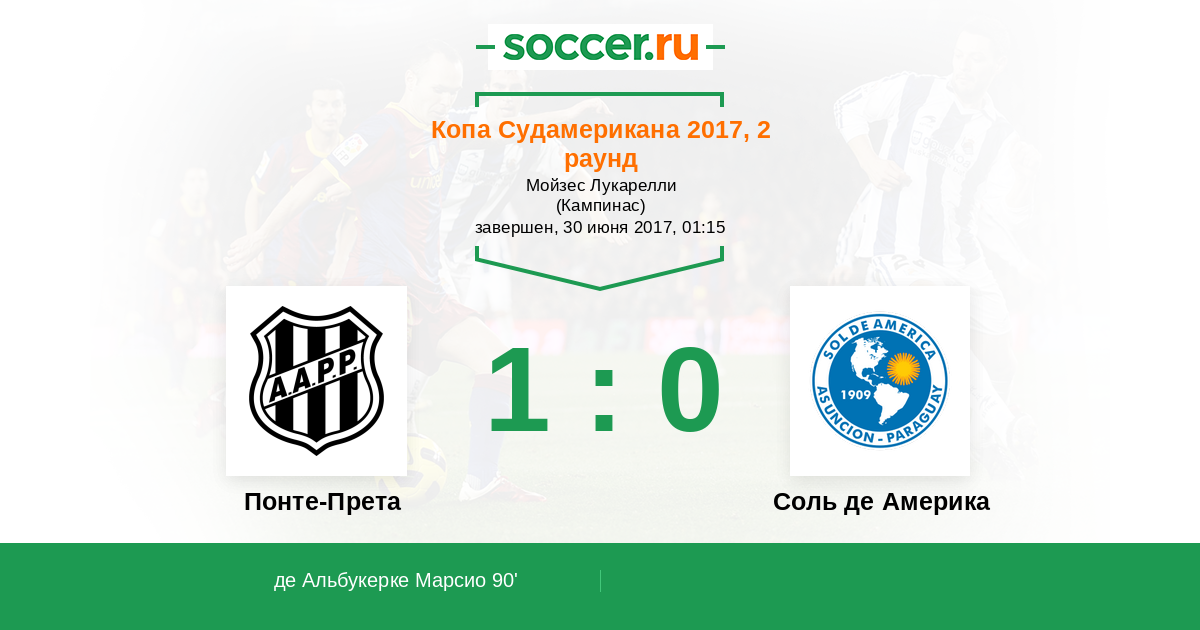 Протокол матча Понте-Прета против Соль де Америка