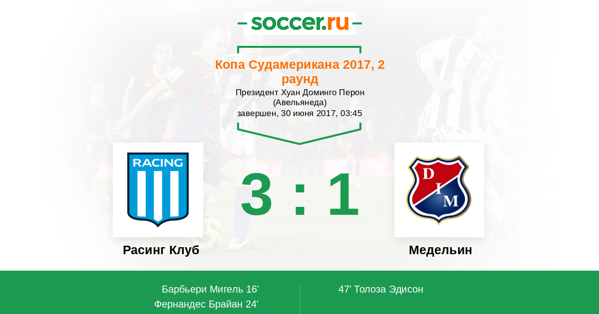 Протокол матча Расинг Клуб против Медельин