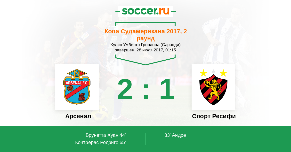 Протокол матча Арсенал против Спорт Ресифи