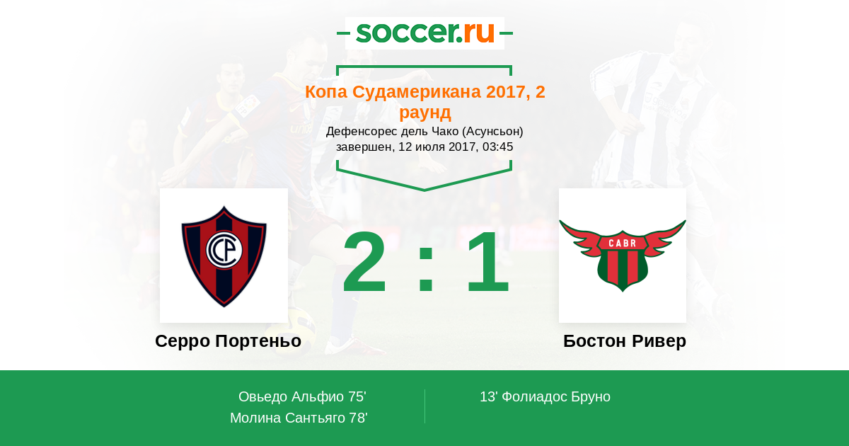 Протокол матча Серро Портеньо против Бостон Ривер