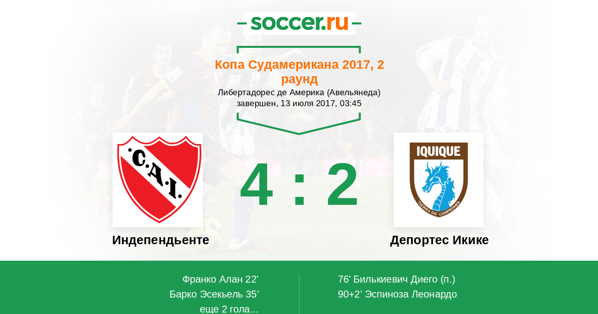Протокол матча Индепендьенте против Депортес Икике