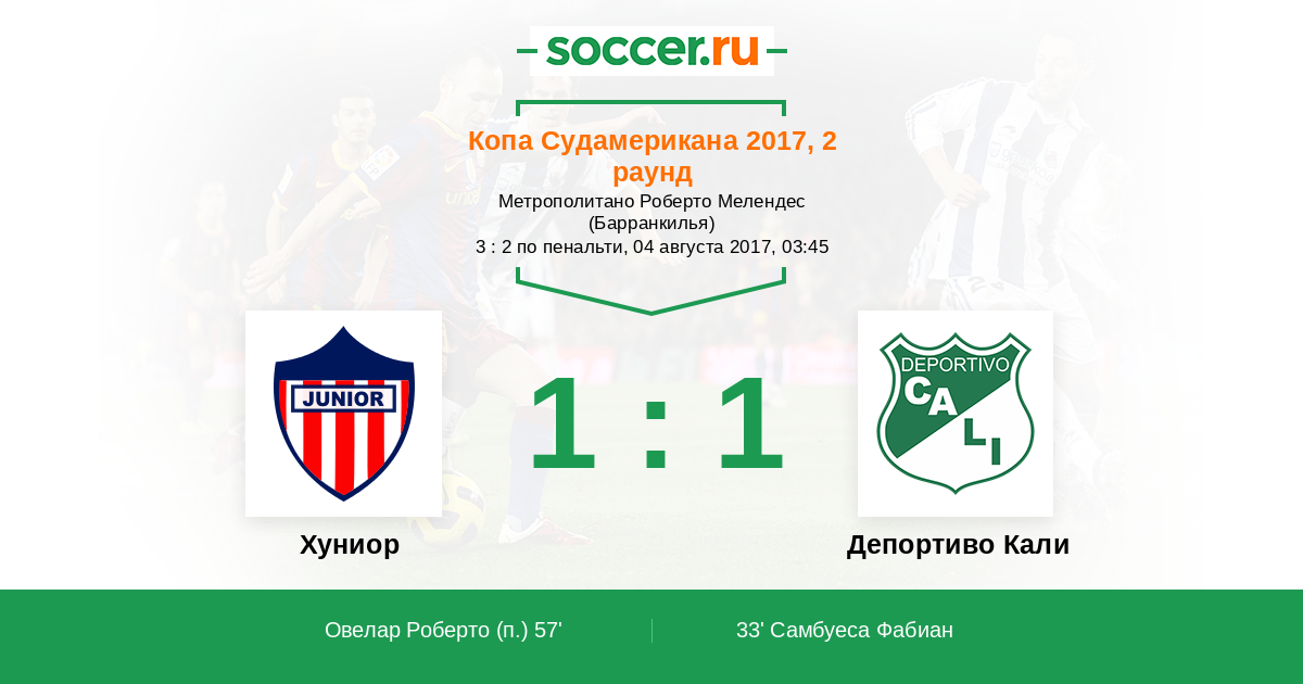 33' (0:1) Самбуеса Фабиан (25) (Роа Андрес (10))