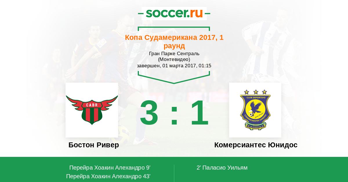 Протокол матча Бостон Ривер против Комерсиантес Юнидос