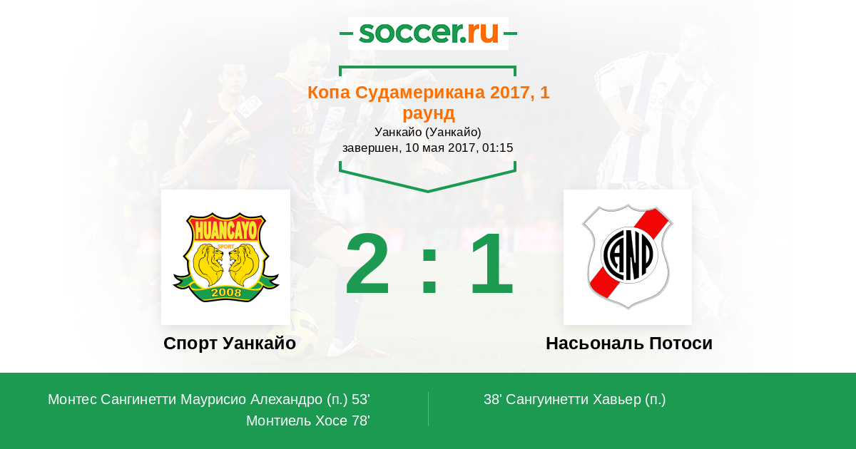 Протокол матча Спорт Уанкайо против Насьональ Потоси