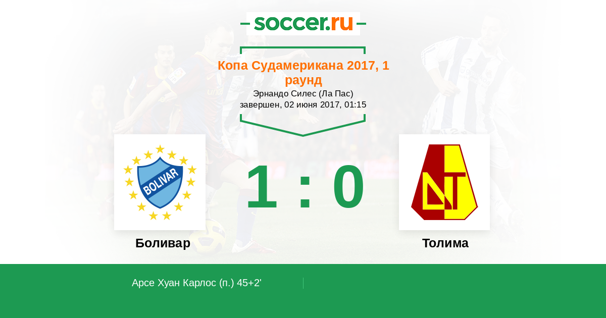 45+2' (1:0) Арсе Хуан Карлос (17)