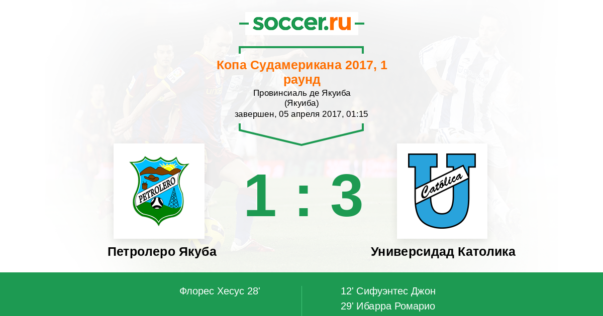 Протокол матча Петролеро Якуба против Универсидад Католика