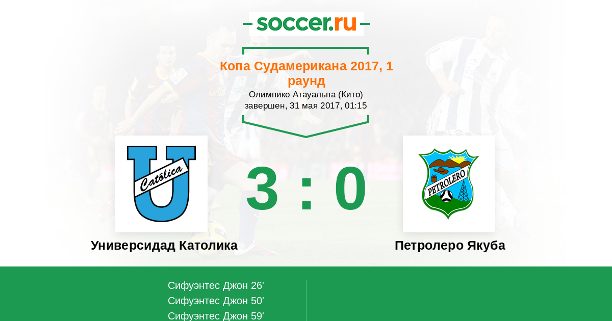 Протокол матча Универсидад Католика против Петролеро Якуба