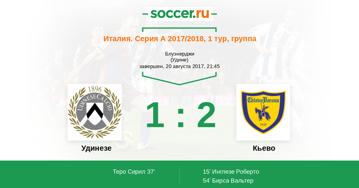 Протокол матча Удинезе против Кьево
