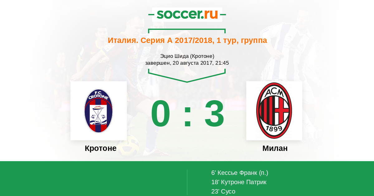 Протокол матча Кротоне против Милан