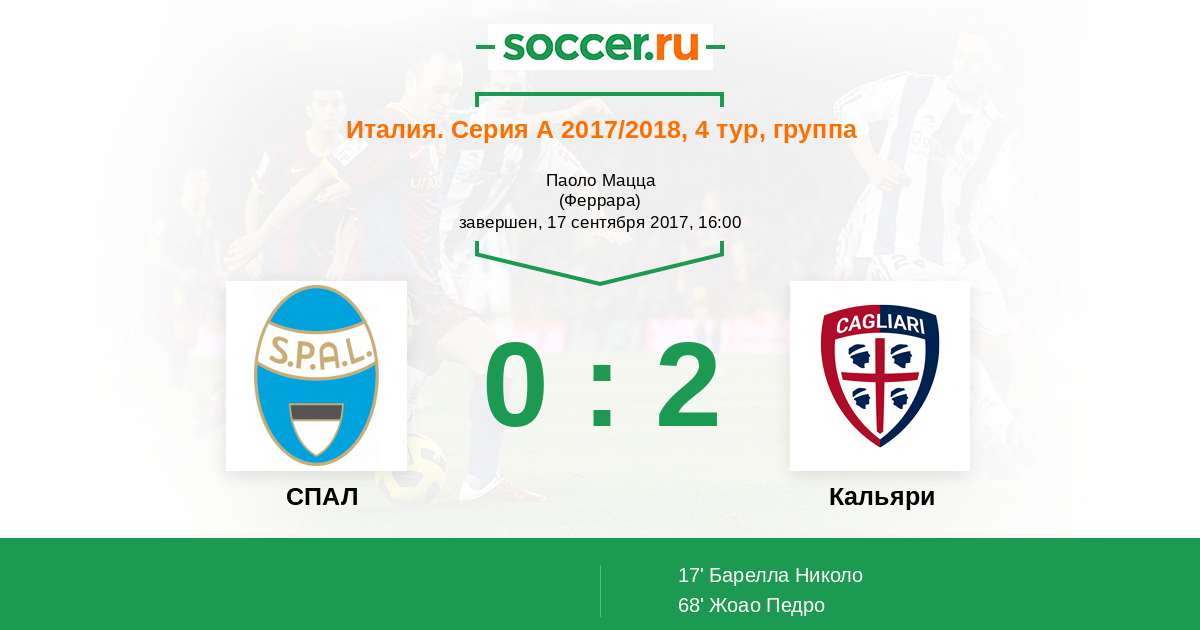 Протокол матча СПАЛ против Кальяри