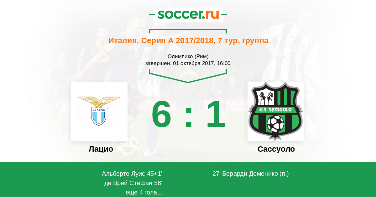 Протокол матча Лацио против Сассуоло
