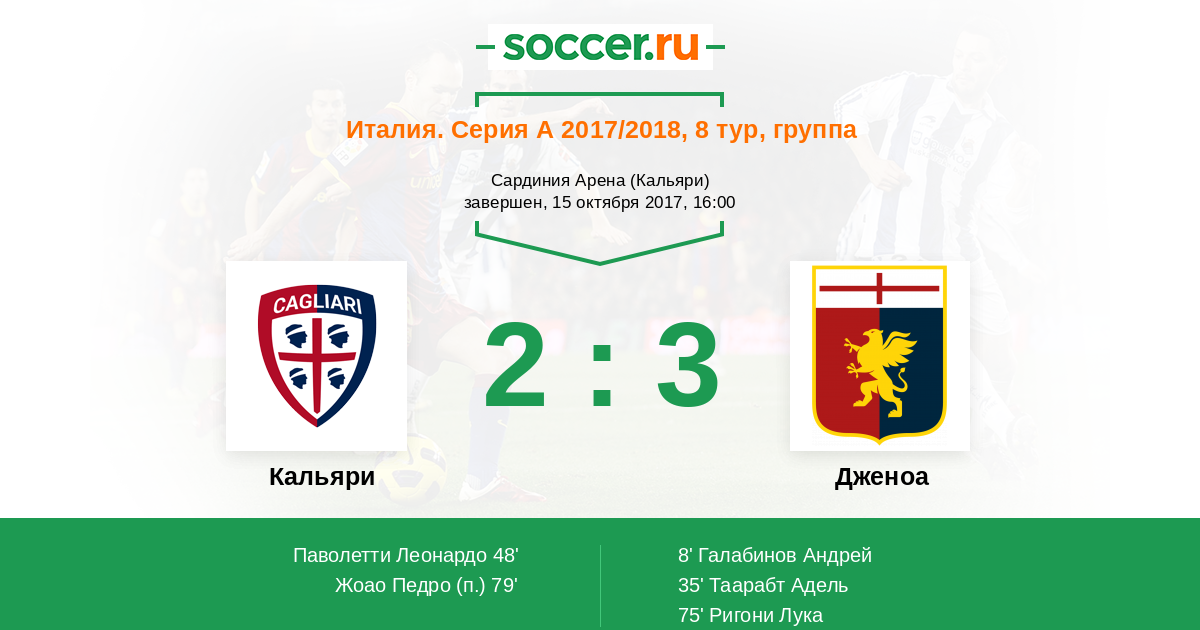 Протокол матча Кальяри против Дженоа