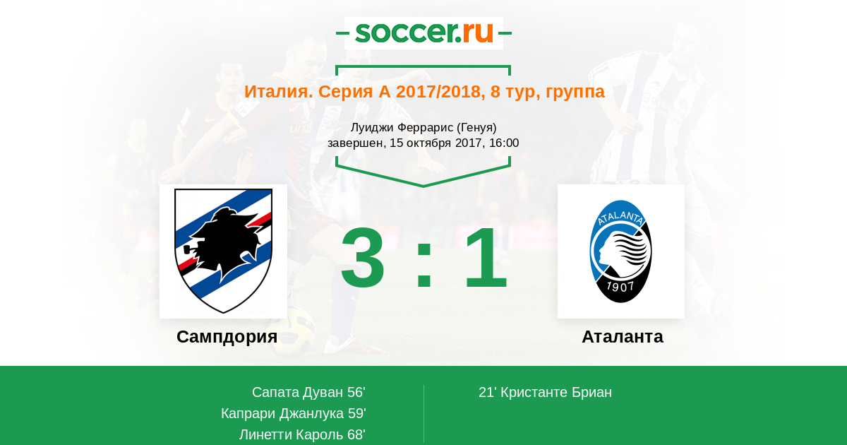 Протокол матча Сампдория против Аталанта