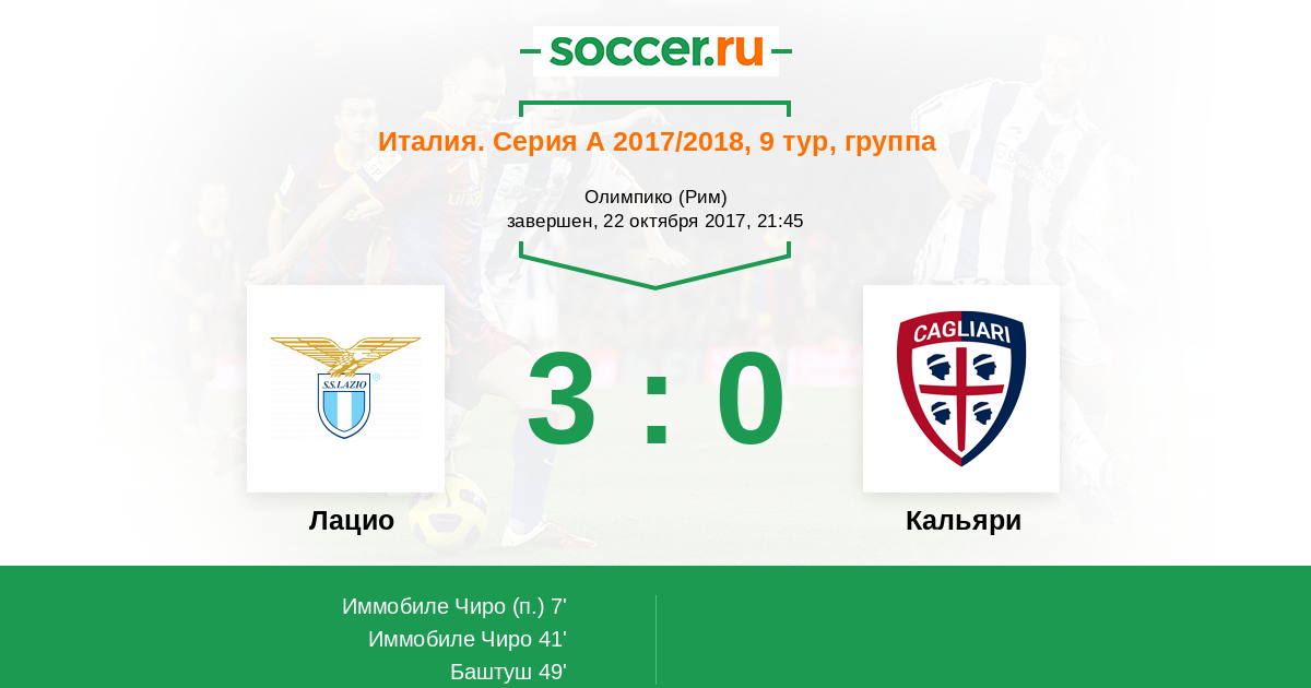 Протокол матча Лацио против Кальяри
