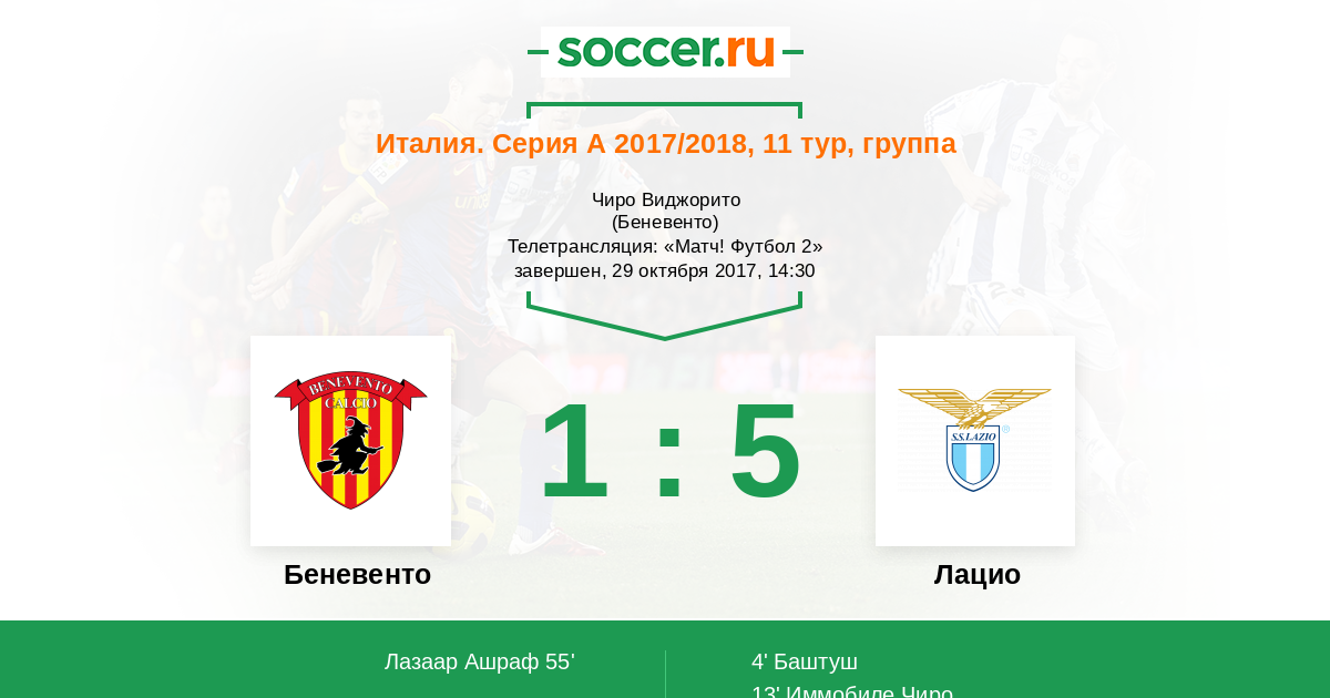 Протокол матча Беневенто против Лацио