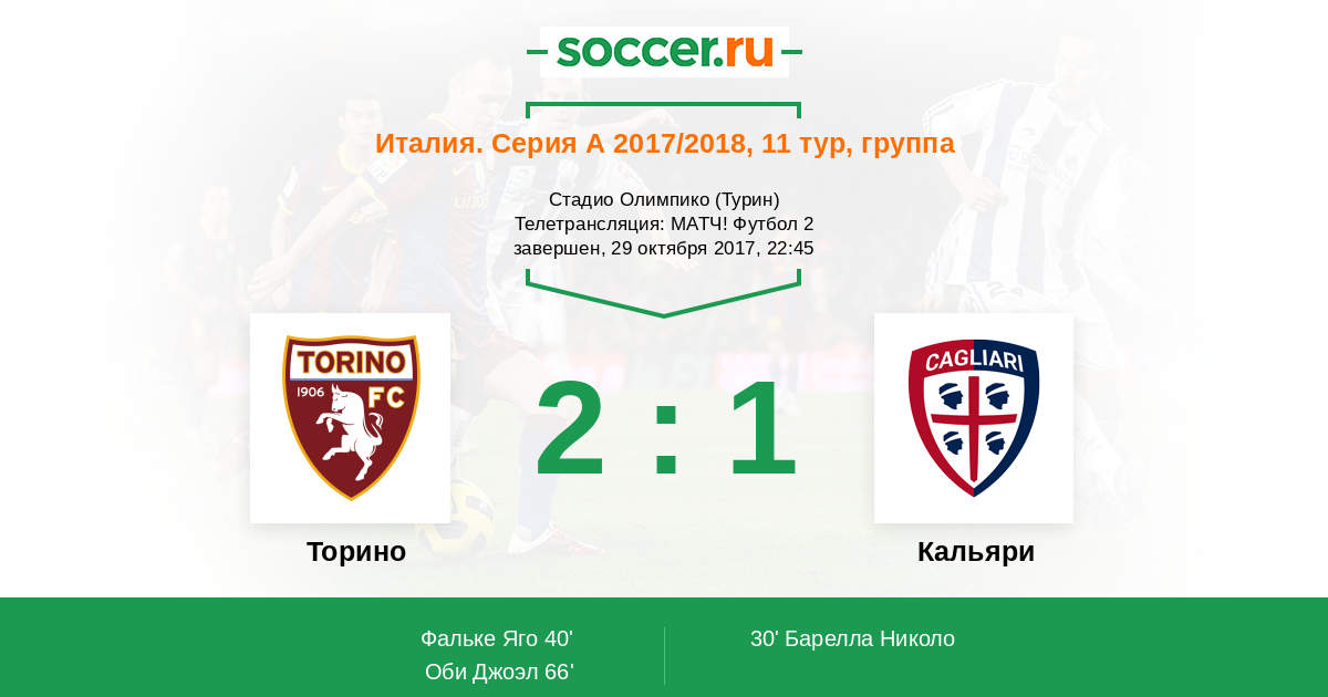 Протокол матча Торино против Кальяри