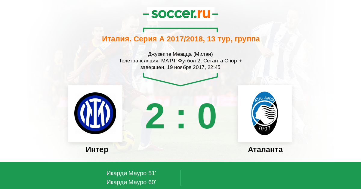 Протокол матча Интер против Аталанта