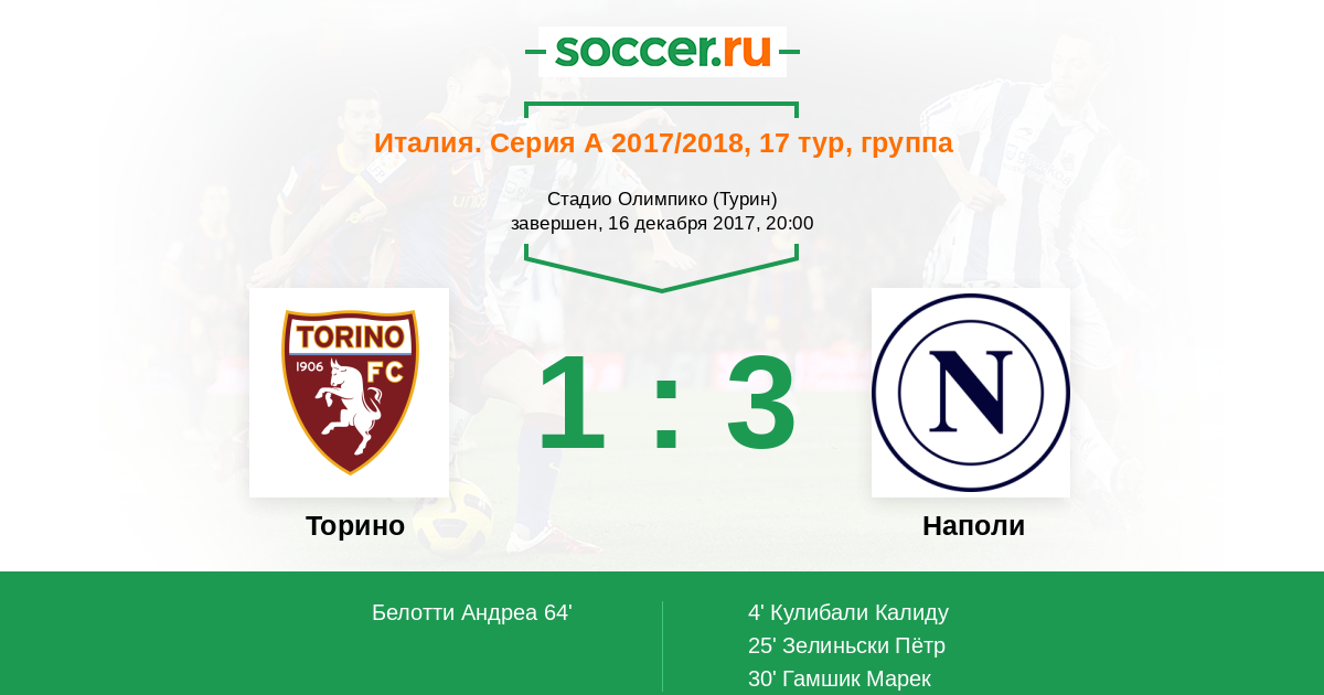 Протокол матча Торино против Наполи