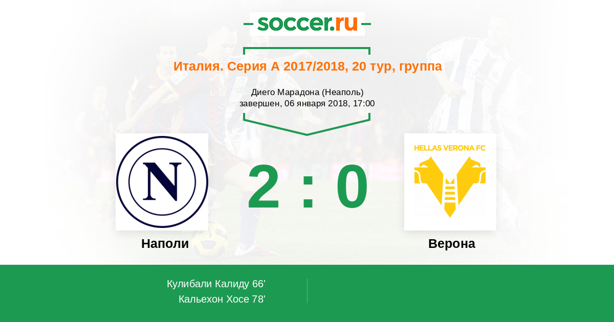 Протокол матча Наполи против Верона