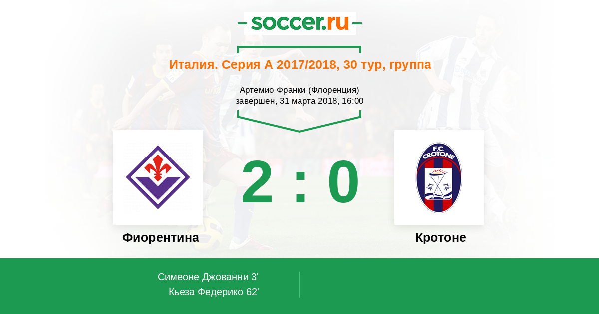 Протокол матча Фиорентина против Кротоне