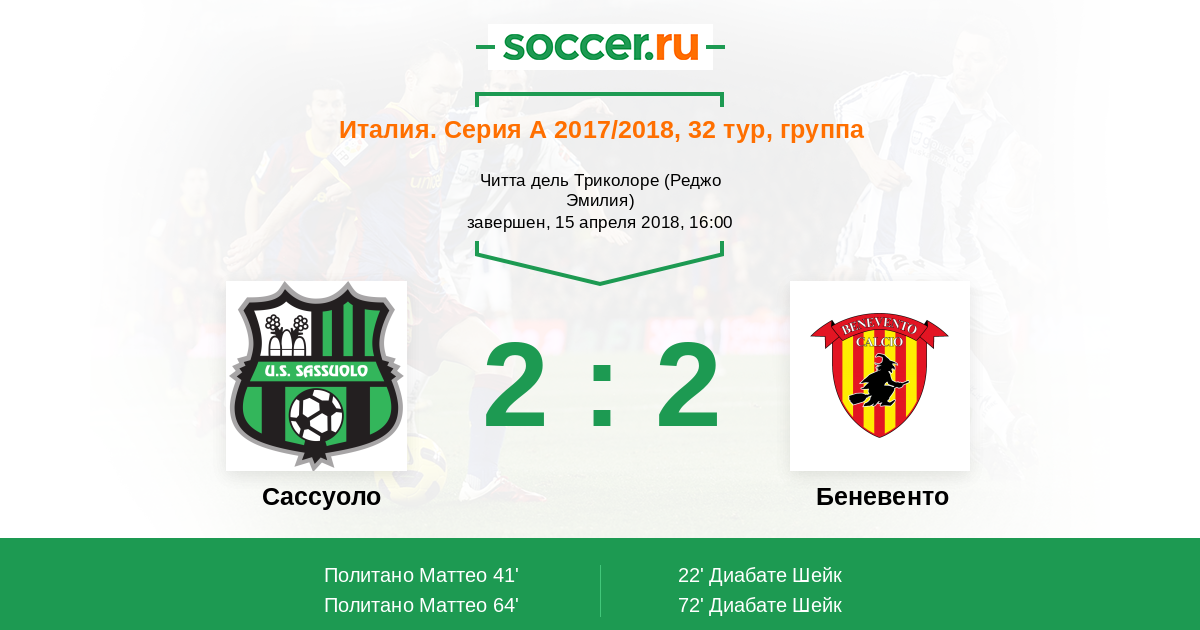 64' (2:1) Политано Маттео (16) (Бабакар Хума (30))