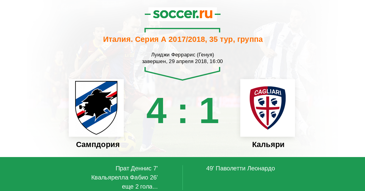 Протокол матча Сампдория против Кальяри