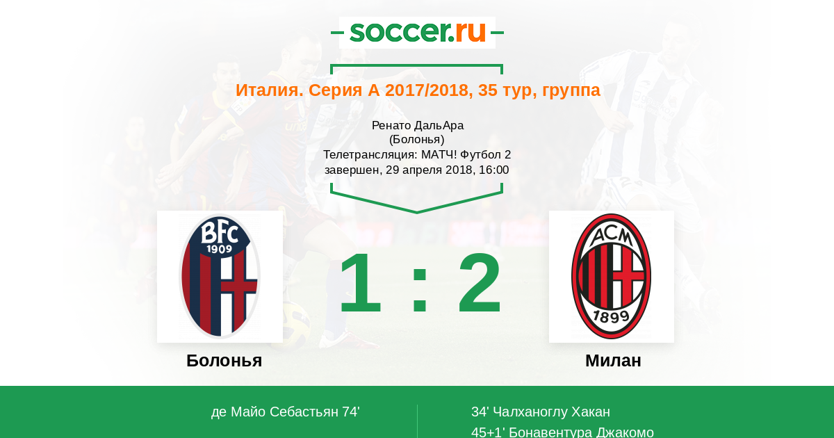 34' (0:1) Чалханоглу Хакан (10) (Кутроне Патрик (63))