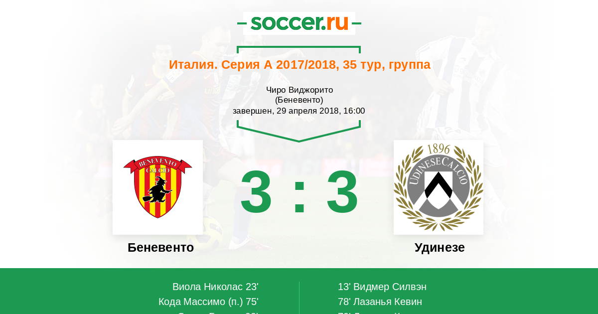Протокол матча Беневенто против Удинезе