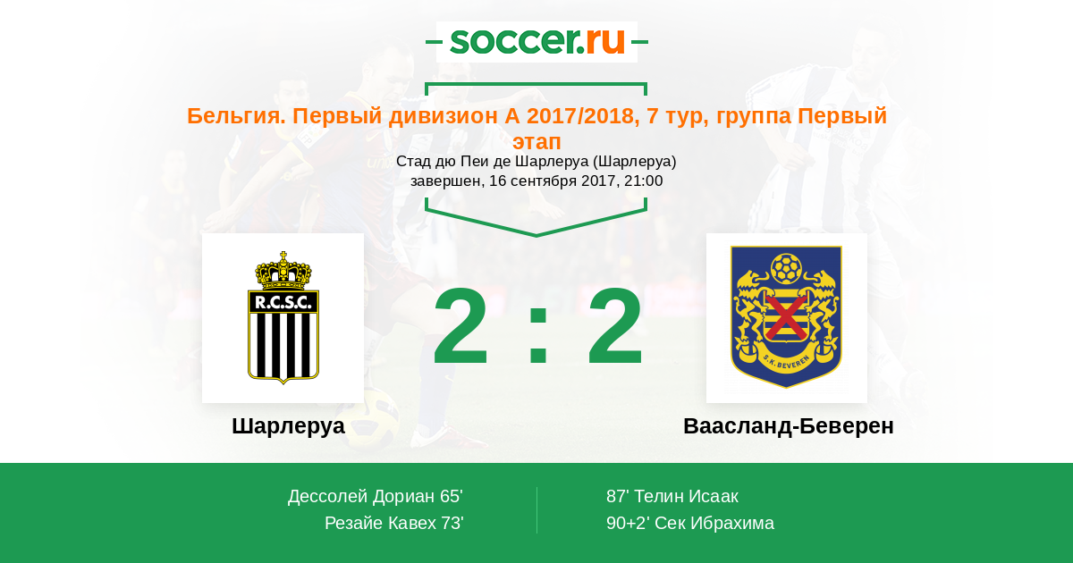 Протокол матча Шарлеруа против Ваасланд-Беверен