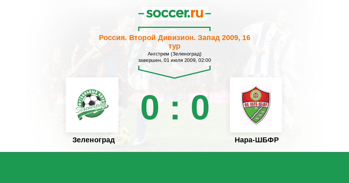 Россия. Вторая лига. Группа 2 16.07.2010 Нара-ШБФР Логотип футбольный клуб Нара-ШБФР (Наро-Фоминск) 0:0 Логотип футбольный клуб Зеленоград (Москва) Зеленоград