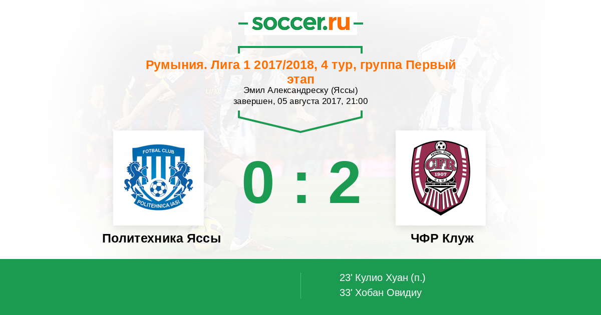 Протокол матча Политехника Яссы против ЧФР Клуж